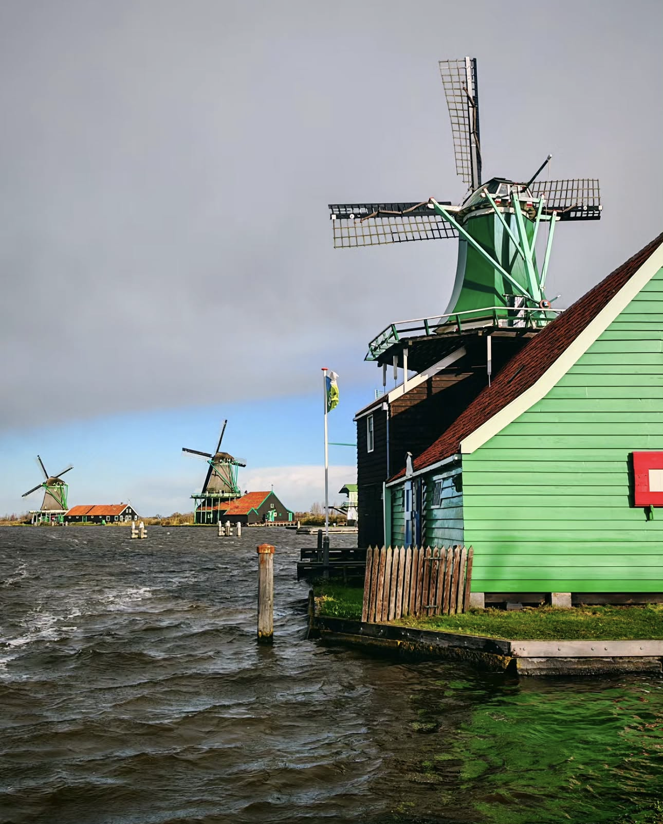 Yürüyüş boyunca Zaan Nehri üzerindeki köprüden geçerken değirmenlerin siluetleri yavaş yavaş beliriyor — bu manzara, birçok gezginin “Hollanda anısı” olarak hafızasına kazınıyor.