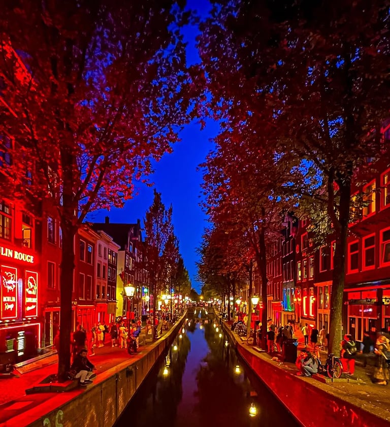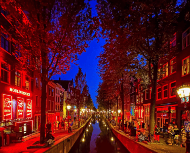 Amsterdam’ın en ünlü ve tartışmalı bölgesi olan Red Light District (De Wallen), tarih boyunca şehrin ticaret ve eğlence merkezi olmuş bir alanın günümüzdeki modern yansımasıdır. Dar sokaklar ve eski kanal evlerinin arasında yürürken, vitrinlerdeki kırmızı ışıkların arkasında çalışan profesyonelleri görebilirsin; burası Amsterdam’ın “özgürlük” anlayışının simgelerinden biri olarak kabul edilir.