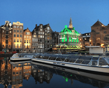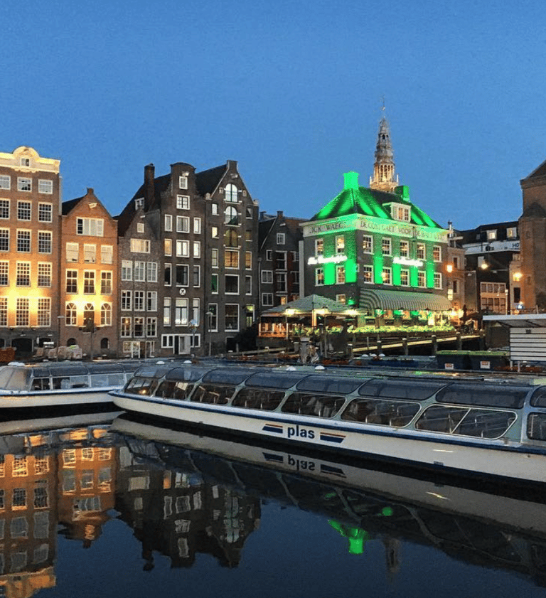 Rembrandtplein’den Red Light District’e geçmek, Amsterdam’ın tarihini ve kanallarını keşfetmek için en keyifli yürüyüş rotalarından biridir. Meydandan çıkarak Holvemoonsteeg Köprüsü üzerinden Amstel Nehri kıyısına ulaşıyorsun; buradan suyun kenarında yürüyerek şehrin klasik kanal manzaralarını izleyebilirsin.