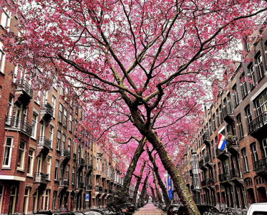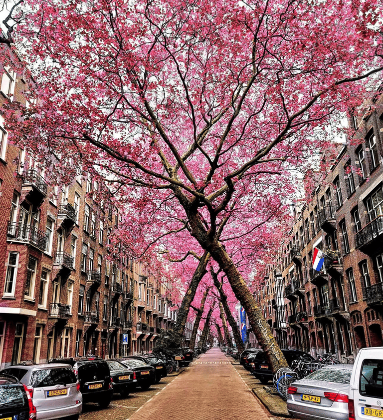 Vondelpark’tan kısa bir yürüyüşle ulaşabileceğin Lomanstraat, Amsterdam’ın gizli güzelliklerinden biri. Burada sokağın iki yanında yükselen ağaçlar, gökyüzüne doğru eğilerek adeta birbirine dokunur — ortaya çıkan manzara ise bir doğal tünel gibidir.