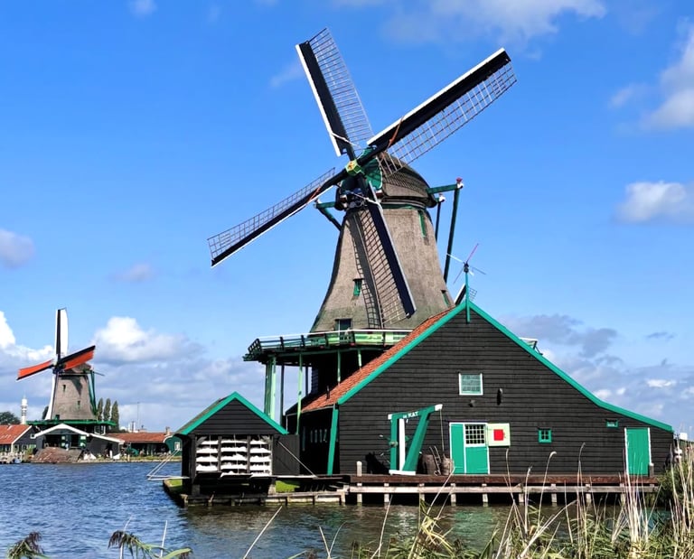 Amsterdam’ın hareketli sokaklarından sadece yarım saat uzaklıkta, bambaşka bir dünya seni bekliyor: Zaanse Schans ve Zaandam. Renk renk ahşap evleri, dönen yel değirmenleri, peynir kokusuyla dolu dükkanları ve huzur veren kanallarıyla burası adeta Hollanda’nın açık hava müzesi.