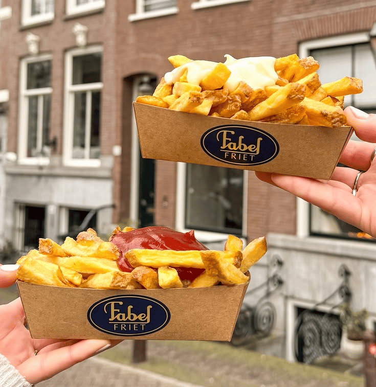 Damrak Street üzerinde yürürken önünde sürekli uzun kuyruklar göreceğiniz bir nokta var: Manneken Pis. Amsterdam’ın en popüler patates kızartması dükkanlarından biri olan bu küçük mekan, 20’den fazla sos seçeneğiyle servis edilen çıtır çıtır “friet”leriyle ünlü.