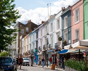 Notting Hill’in cazibesi, şüphesiz pastel tonlara boyanmış sıra evlerinde gizli. Portobello Road’dan kısa bir yürüyüşle kendini bu masalsı sokaklarda bulabilirsin.