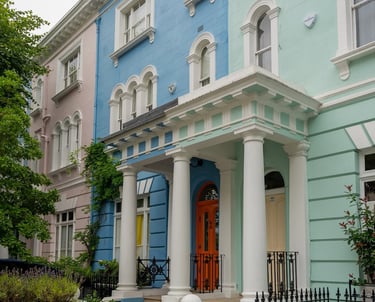 Colville Terrace (W11 2BE): Daha zarif pastel tonlarıyla romantik bir atmosfer sunar; özellikle sabah ışığında çok etkileyici.
