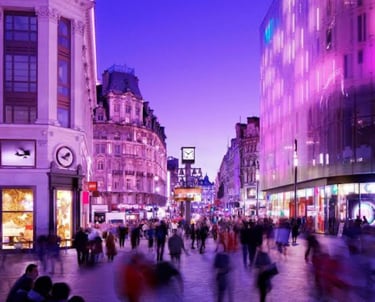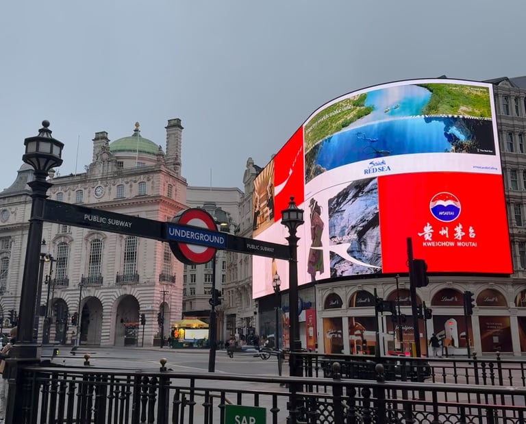 · Trafalgar Square · Piccadilly Circus · Leicester Square · Covent Garden · Soho · Regent Street · Oxford Street · Bond Street · Carnaby Street · Chinatown