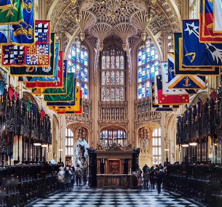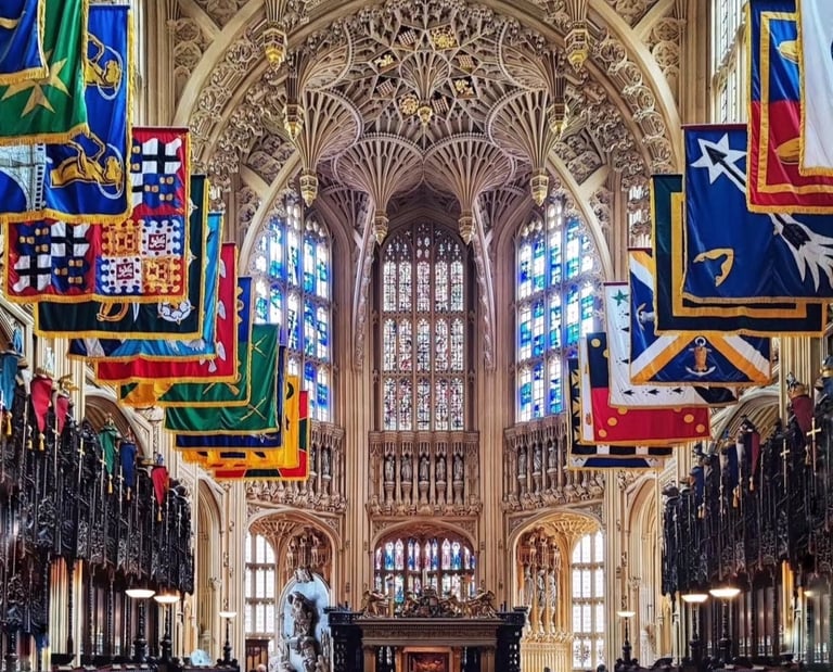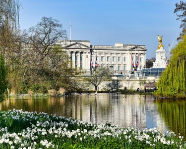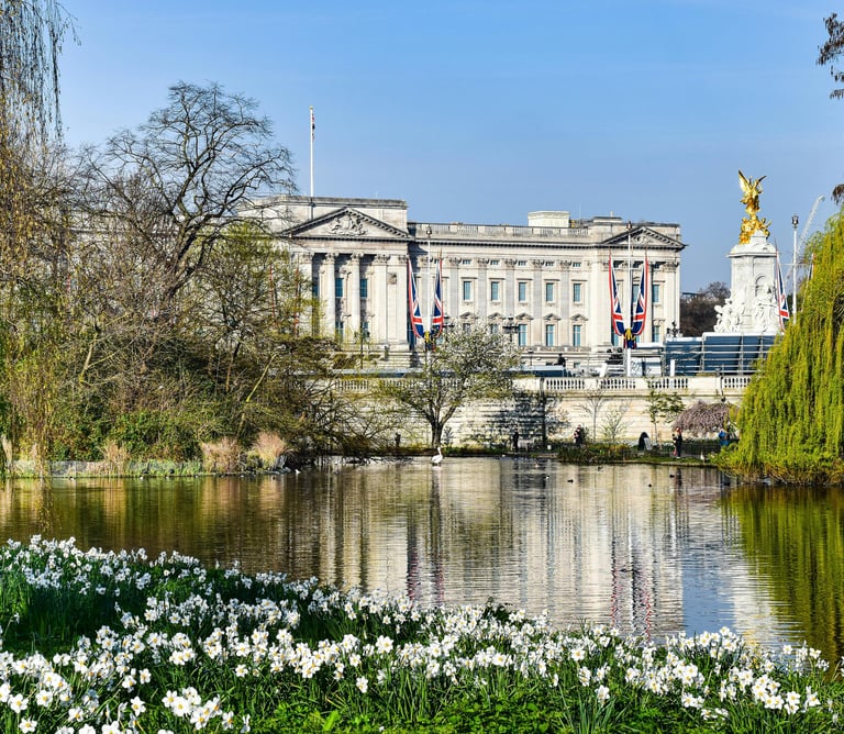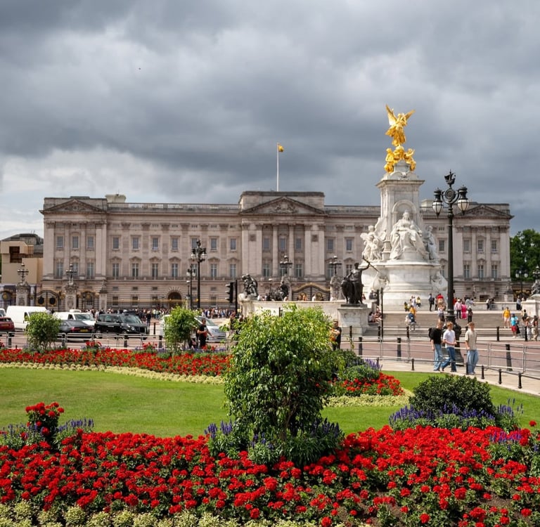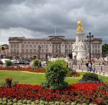 Kraliçe Elizabeth’in (artık Kral Charles’ın) resmi ikametgâhı. Önünde toplanan kalabalıklar, görkemli törenler ve bayraklar, İngiltere’nin kraliyet geleneğini hissettirir.