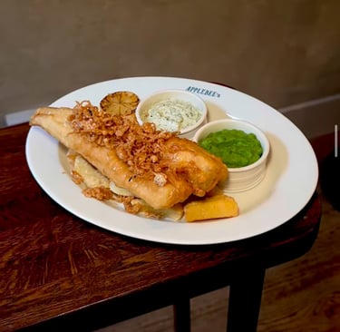 Eritilmiş İsviçre peyniri, sıcak patateslerin, turşunun ve soğanın üzerine dökülerek servis ediliyor. Peynirseverler için tam bir şölen!Applebee’s Fish – Fish Sandwich