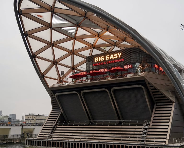 Tarihi Greenwich’in dingin atmosferinden çıktıktan sonra kendini Londra’nın en modern bölgelerinden birinde bulacaksın: Canary Wharf. Gökdelenlerin göğe yükseldiği bu finans merkezi, şehrin iş dünyasının kalbi olduğu kadar, alışveriş, sanat ve yeme-içme seçenekleriyle de öne çıkıyor.