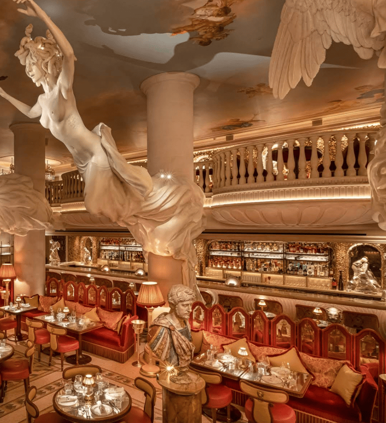 Antik Yunan ve Roma’dan ilham alan görkemli dekorasyonu, duvarlarındaki sanat eserleri ve şık atmosferiyle Londra’nın en göz alıcı restoranlarından biri. Akdeniz esintili menüsü, ilk günü unutulmaz bir deneyimle bitirmeni sağlar.